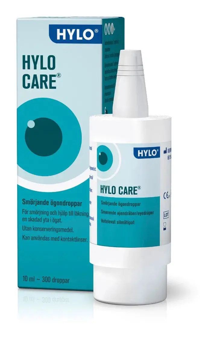 Hylo-Care fuktar och hjälper läkning av skador på ögats yta, till följd av torra ögon eller efter kirurgiska ingrepp.