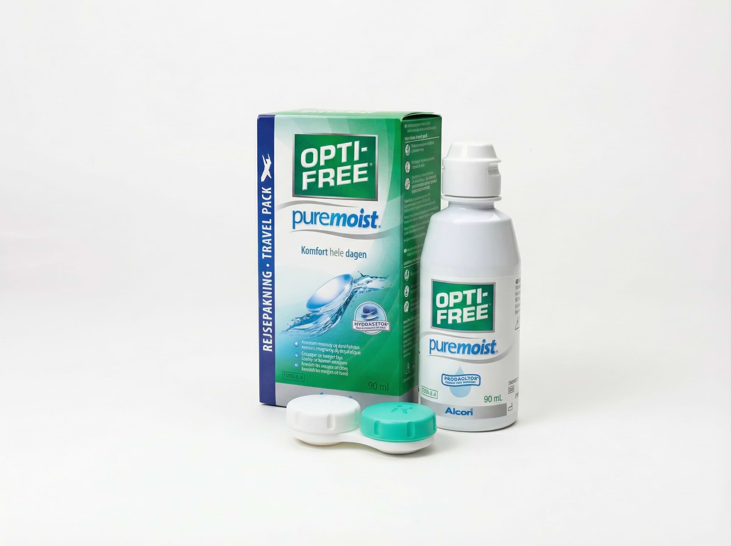 Opti-Free Puremoist är en linsvätska från tillverkaren Alcon. Opti-Free Puremoist gör att linserna håller sig fuktigare längre. Linsvätskan kan användas för återställning, rengöring, sköljning och desinficering och passar utmärkt till alla silikon hydrogellinser. Dessutom fungerar den också med fördel till alla andra typer av mjuka kontaktlinser. Denna linsvätska är till för dig som ställer de allra högsta kraven på komfort och effektiv rengöring! Opti-Free Puremoist uppfyller de högsta desinficeringskraven och är därför extra lämplig vid utlandsresor. Gratis linsetui medföljer!